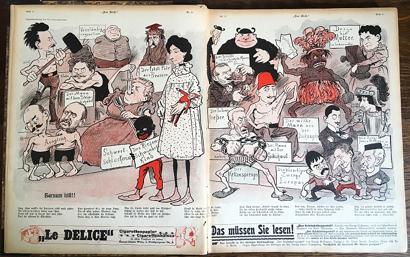 * Mit Illustrationen und Karikaturen von Theodor Zajaczkowski (1852-1908), Friedrich Graetz (1842-1912), F. Victor (München) und Julius Klinger (1876-1942). Textbeiträge erschienen unter den Rubriken "Aus der Woche", "Der internationale Curgast", "Sport", "Die Dunkelkammer".