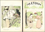 Les Etoiles. No. 17, 1 octobre 1896. Paris (Mascarille) 1896. 16 Seiten, durchgehend illustriert. 32 x 22 cm, farbiges Cover nach Aquarellen von Henri Herrmann. Illustriert von J.P. Besson, J. Belon, F. Piet, G.Ri, G. Wendt (blattgroß), Roy, M. Durand