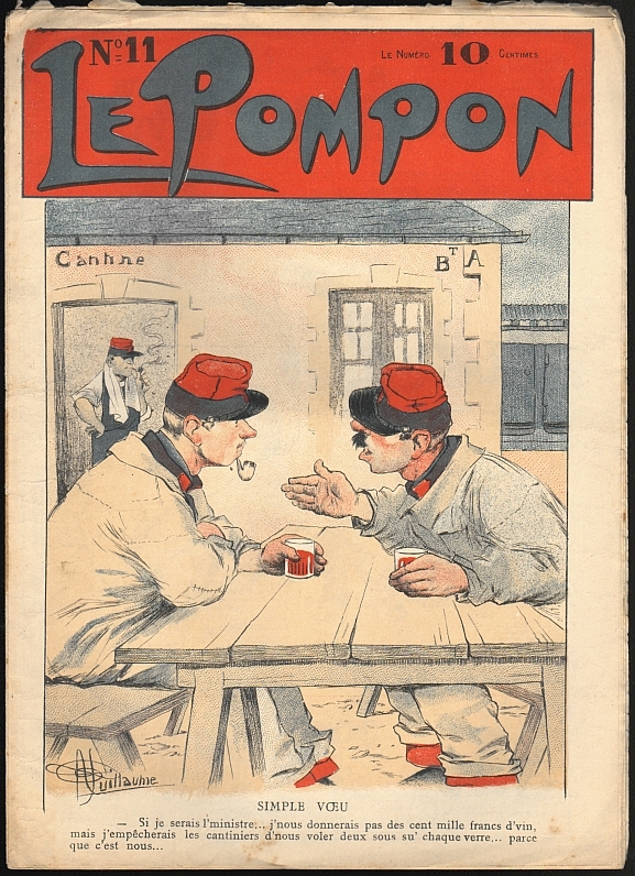 Le Pompon. No. 11, 28 Avril 1901. Paris (Dubuisson) 1901. 12 Seiten (SS. 107-116), durchgehend illustriert. 33,5 x 24 cm, farbiges Cover von Albert Guillaume