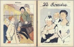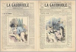 La Gaudriole. Journal de Joyeux Recits, Contes Gaulois et Romans illustrés. No. 374 + No. 578. Paris 1894, 1896. 2 Hefte, je 8 Seiten, mit Illustrationen. 33 x 23,5 cm, farbige Cover von P. Riclece und Charvic