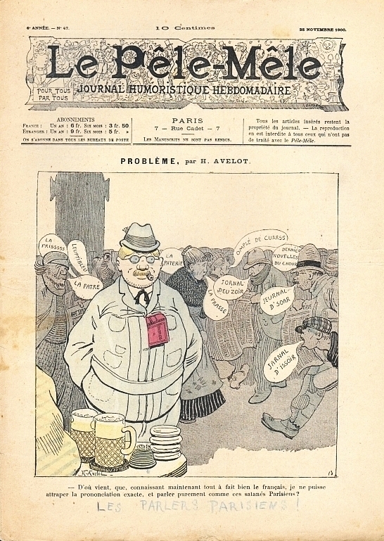 Le Pêle-Mêle. Journal humoristique hebdomadaire. 6e année, No. 47, 25 Novembre. Paris (Imp. G. Richard) 1900. 15 Seiten, durchgehend illustriert. 32 x 23,5 cm, farbiges Cover von Henri Avelot. Illustrationen von G. Ri, Maurice Radiguet