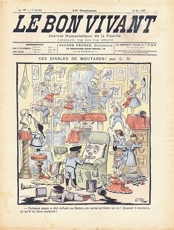 Le Bon Vivant. Journal Humoristique de la Famille. 2e annee, No. 79, 18 Mai 1901. Paris (Fayard Freres) 1901. 16 Seiten, durchgehend illustriert. 32,5 x 25 cm, farblith. Cover von G.Ri. Mit weiteren Illustrationen von Marcel Capy u.a.