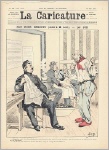 La Caricature. Journal hebdomadaire (Dir. E. Kolb). 12e année, No 584. Paris 1891. 8 Seiten, durchgehend illustriert. 38 x 28 cm, farbiges Cover von Job. Mit Illustrationen von Godefroy, Laudati, A. Vignola, A. Robida, Draner, A. Falco, E. Damblans, A. Guillaume, M. Radiguet