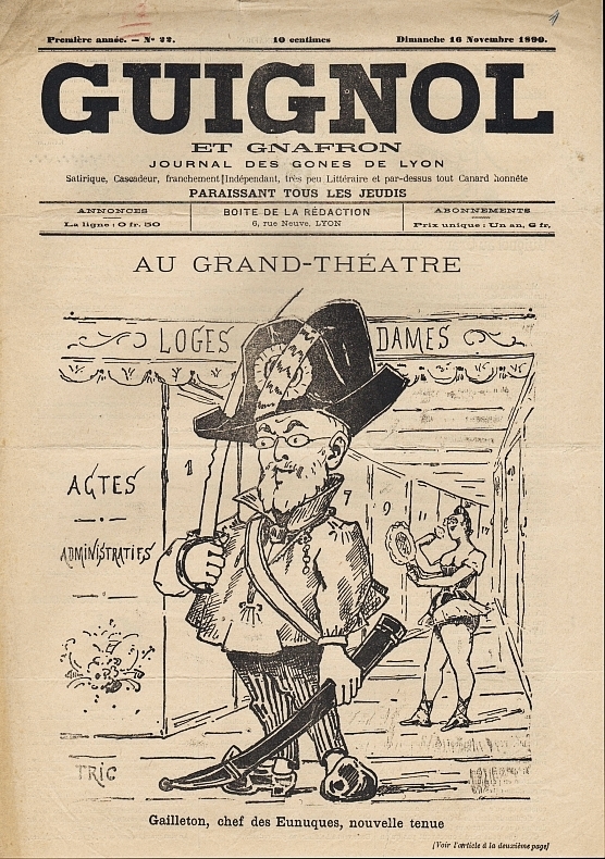 Guignol et Gnafron. Journal des Gones de Lyon. 1re année, no. 22, 16 Novembre 1890. Lyon 1890. 4 Seiten. 44,5 x 29,5 cm, Cover illustriert