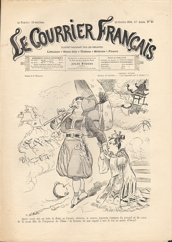 Le Courrier Francais. 11e année, no. 43, 28 Octobre 1894. Paris 1894. 12 Seiten, durchgehend illustriert. 39,5 x 29 cm, Cover von A. Willette. Mit Illustrationen von F. Lunel, Hermann Paul, A. Willette