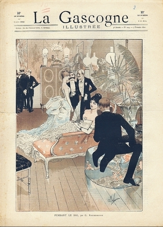 La Gascogne illustrée. 3e année, no. 104, 7 Février 1891. Bordeaux 1891. 8 Seiten (SS. 122-127), illustriert. 40 x 30 cm, farbiges Cover von G. Rochegrosse