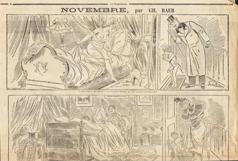 Le Supplément. Grand Journal Littéraire illustré. 13e année, no. 1133, 19 Novembre 1896. Paris 1896. 4 Seiten, illustriert. 65 x 47 cm. Mit einer Bildergeschichte von Gil Baer auf der Rückseite