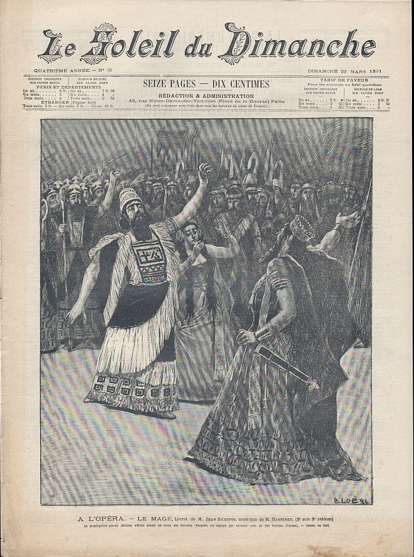 Le Soleil du Dimanche. 4e année, no. 12, 22 Mars 1891. Paris 1891. 16 Seiten, illustriert. 40 x 30,5 cm, Cover illustriert. Mit einer blattgroßen Illustration nach Renouard "La distribution des barbes et des perruques aux figurants de l'Opera"