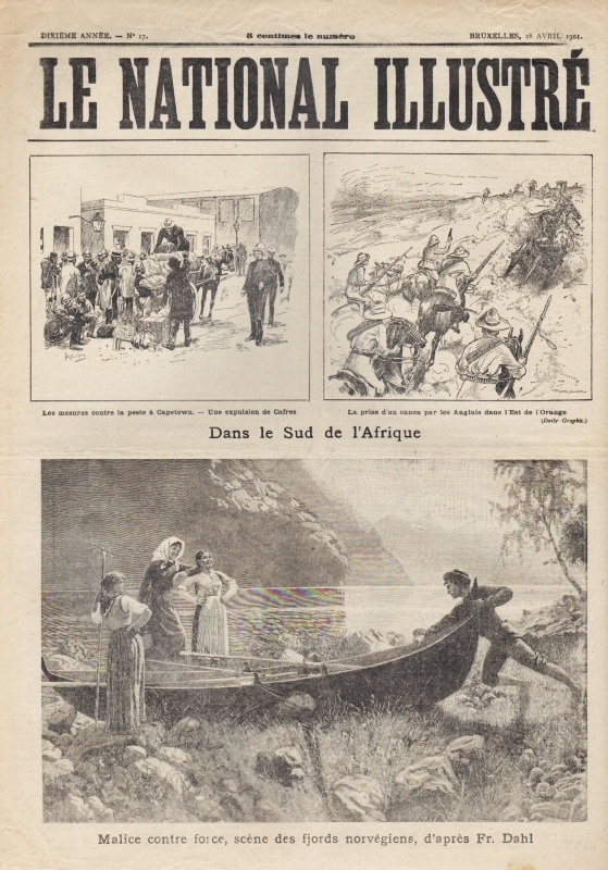 Le National Illustré. (Ed. F. Piette). 10e année, no. 17, Bruxelles, 28 Avril 1901. Bruxelles 1901. 8 Seiten, illustriert. 43,5 x 31 cm, Cover illustriert. Mit Cartoons von Maurice Marais u.a.