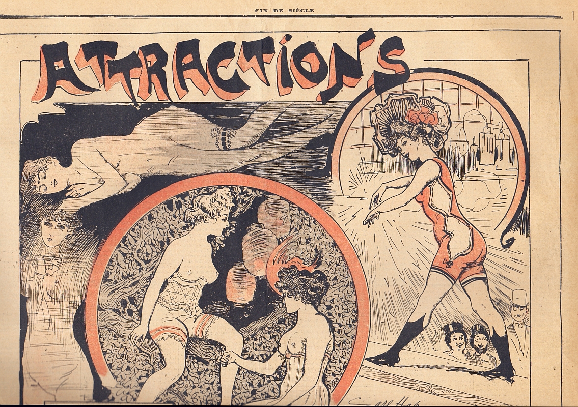 Fin de Siecle. Grand Journal littéraire illustré. Dir. Elie Brachet. Sixième année, No. 584, No. 585, No. 587 (= 3 Hefte). Paris 1896. Je 4 Seiten, illustriert. 62,5 x 45 cm, mit rotgetönter Umschlagillustration. Illustrationen von Carl Hap, Jack Abeillé, J. Belon