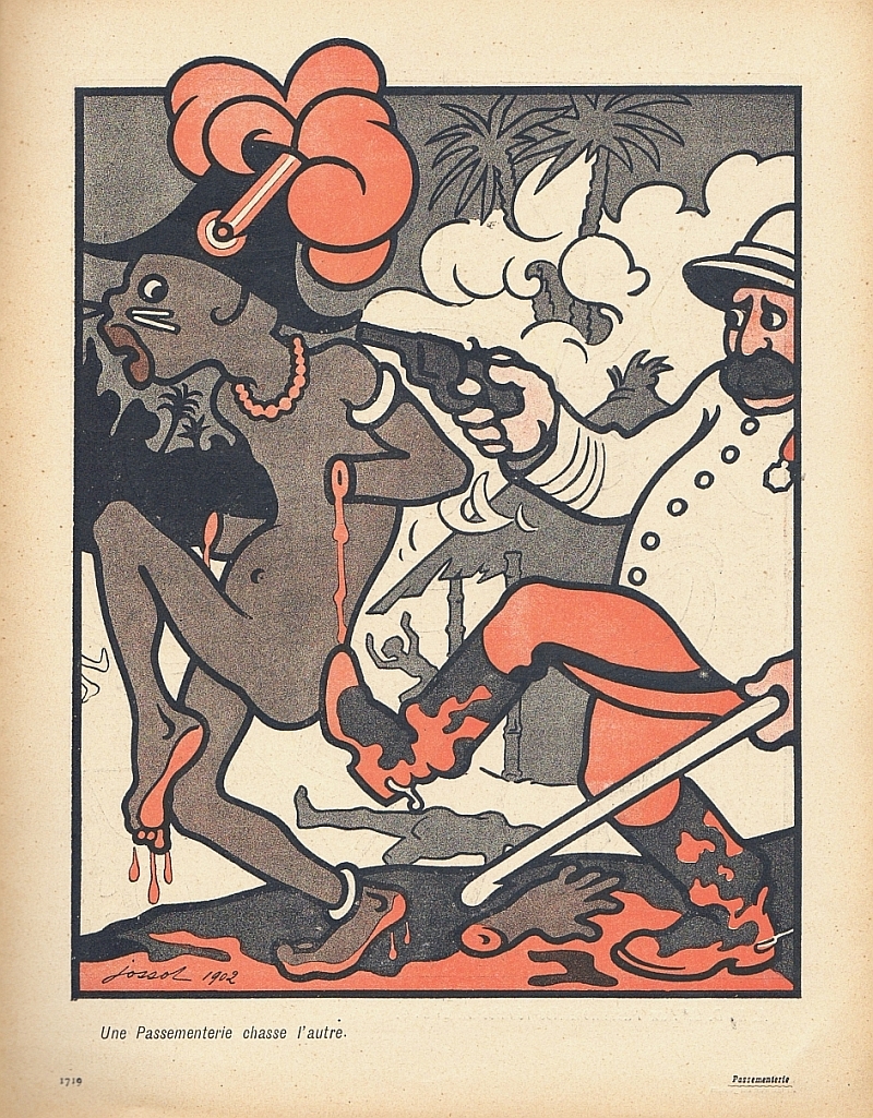L'Assiette au Beurre. "Passementerie", No. 102, 14 Mars 1903. (Paris) 1903. 16 Seiten (SS. 1710-1724), durchgehend illustriert. 31 x 24 cm, farbiges Cover. Von Henri Gustave Jossot gestaltetes Heft mit 13 blattgroßen farbigen Illustrationen (eine doppelseitig), Texte von Henry Berenger