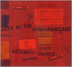 JATP - Granz, Norman jazz at the philharmonic. Frankfurt (Oehms-Druck) (1957). 24 S. mit vielen Fotos. 27 x 22 cm, Klammerheftung, illustrierter Orig.-Karton (Kanten leicht berieben, hsl. Vermerk "Mai 1957" auf letzter Seite) * Programmheft zum legendären Konzert im Berliner Sportpalast vom 21. Mai 1957 mit dem Oscar Peterson Trio, Jo Jones, Roy Eldridge, Stuff Smith, Ray Brown, Herb Ellis, Ella Fitzgerald und Don Abney. Einführung von Olaf Hudtwalker, zweisprachig deutsch-italienisch. - Fotos von Robert Lebeck, Robert Ruthardt und Friedel
