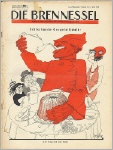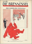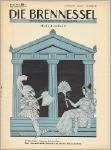 Die Brennessel. 5. Jahrgang. Folge 18 / 7. Mai 1935. 16 Seiten (274-288). 28,3 x 37,5 cm, Deckelzeichnung von Seppla: "Völkerbunds-Teegesellschaft - und ihr geladener Gast". - Weitere Karikaturen von Otto Flechtner ("Zum Judenprozeß in Kairo", dreifarbig), Karl Prühäußer (KP), Amhor, Till ("440 Selbstmorde in der französischen Armee seit 1935"), F.A. Sindel (FAS), Eugen Oßwald, Johann Schult. Rückblatt: Litwinow von Murr