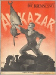 Die Brennessel. 6. Jahrgang. Folge 41 / 13. Oktober 1936. 12 Seiten (506-516). 28,3 x 37,5 cm, Deckelzeichnung von Seppla: Alkazar: "Die Fahne ist mehr als der Tod". - Weitere Karikaturen von Till, F.A. Sindel, TES (farbig), Karl Prühäußer (KP), Otto Flechtner