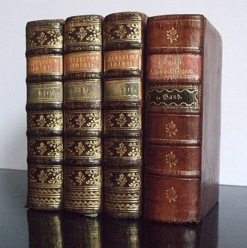 * [1] Das Geschäft des Menschen. 4. Aufl. 1785. Gest. Frontispiz u. Titel mit Vignette, 2 Bll., 238 Seiten. - [2] Vom widrigen und glücklichen Schicksale des Menschen auf Erden. Vier Wahrheiten der aufgeklärten Welt gewidmet. 1783. Kupfertitel, 156 Seiten. - [3] Der christliche Philosoph im widrigen Schicksale. 1779. 32 Seiten, mit gest. Titelvignette. - [4] Freundschaftliche Erinnerungen an einen jungen Menschen, der izt in die große Welt geht. 1780. 60 Seiten, mit gest. Titelvignette, 1 Blatt.