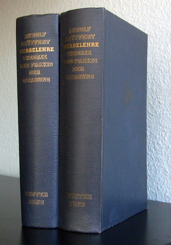 Seyffert, Rudolf: Werbelehre. Theorie und Praxis der Werbung. 2 Bände. Stuttgart (Poeschel) 1966. XIX, 864; VI, 865-1701 Seiten. 24 x 16 cm, Orig.-Leinen mit goldgpr. RTitel (Titelblatt unten angesetzt)