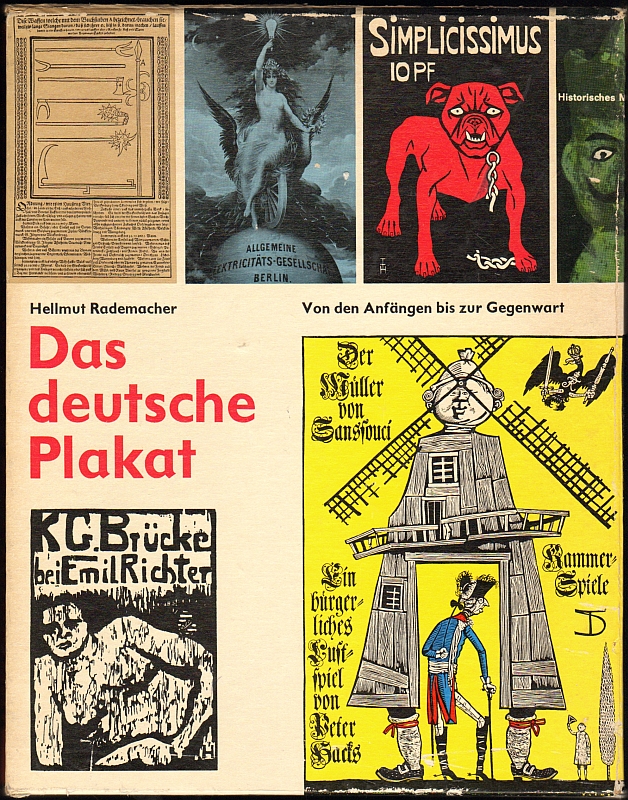 Rademacher, Hellmut: Das deutsche Plakat. Von den Anfängen bis zur Gegenwart. Dresden (Verlag der Kunst) 1965. 306 S. mit 320 teils farbigen Abbildungen und 4 farbigen, gefalteten Plakat-Beilagen in separater Mappe. 31 x 24,5 cm, Orig.-Leinen im illustr. Schuber