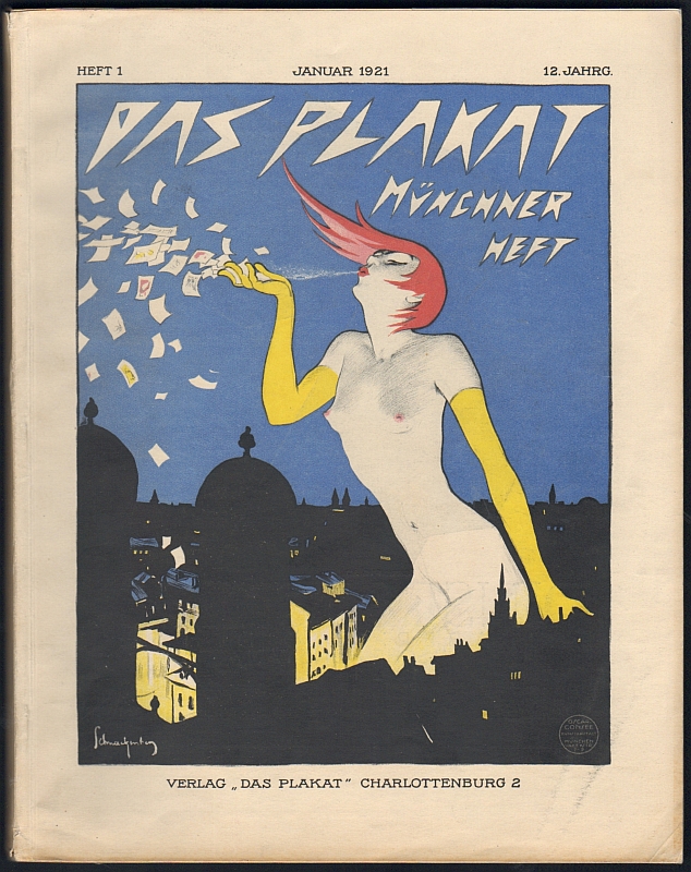 Heft 1 (Januar) Münchner Heft: Münchner Plakate, Reklamekunst und Gebrauchsgraphik, sehr mit 90 Teils farbigen Bildern und 44 farbigen Beilagen außerhalb der Paginierung, Umschlag Walter Schnackenberg