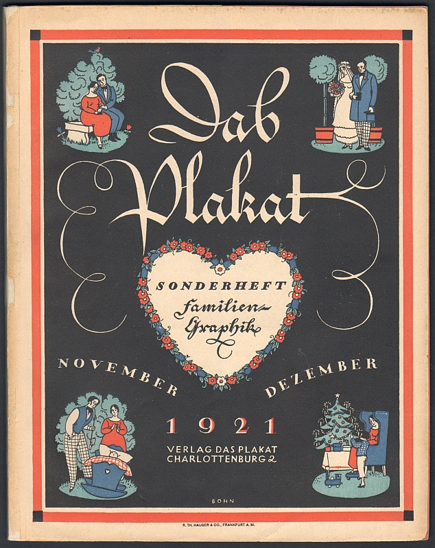 Heft 10 (November/Dezember) Familiengraphik. Titelbeitrag von Richard Braungart mit 30 teils farb. Bildern und 15 farb. Beilagen. Über Exlibris (von Zur Westen). Künstlerische Umzugsanzeigen. Die Bedeutung von Ton und Bild als Werbemittel. Umschlag H. Bohn.
