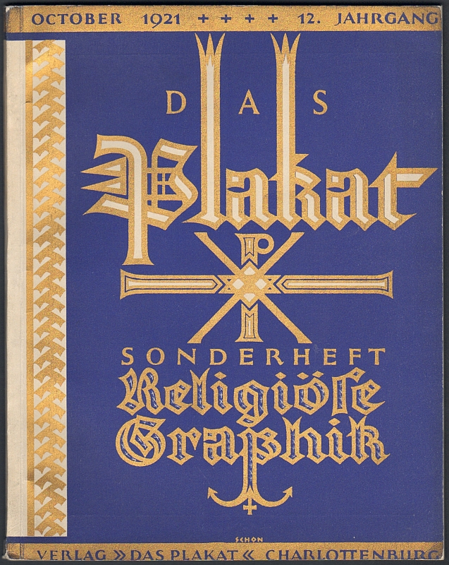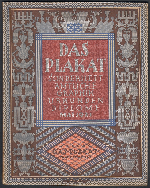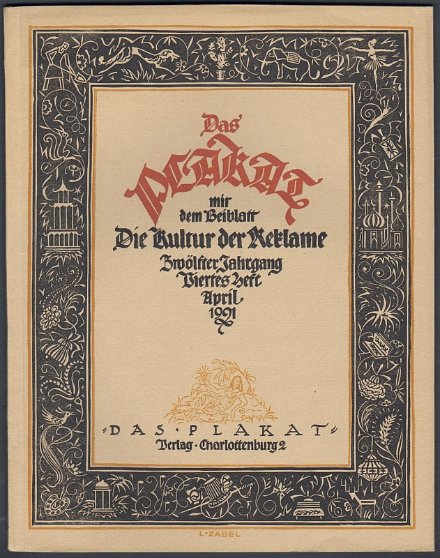 Das Plakat. Zeitschrift des Vereins der Plakatfreunde e.V. 12. Jahrgang 1921 in 10 Heften. Berlin-Charlottenburg (Verlag "Das Plakat") 1921. 668 S. u. zahlr. röm. gezählte Werbeseiten sowie viele, meist eingebundene, teils lose beiliegende farbige Beilagen. 29 x 22,5 cm, Orig.-Karton (kaum Gebrauchsspuren). - Sehr gut erhalten * Der komplette Jahrgang 1921 in Einzelheften, die meist als Themen- bzw. Sonderhefte erschienen: Münchner Heft, Sonderheft Warenzeichen, Tanz und Musik, Amtliche Graphik, Themenheft Walter Kampmann, Hamburg-Heft, Holländische Plakatkunst, Religiöse Graphik, Familiengraphik.